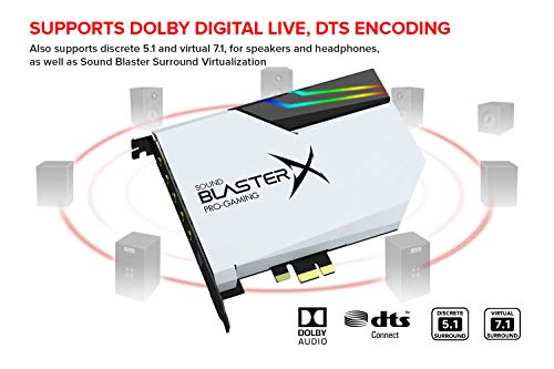 ONDERSTEUNT DOLBY DIGITAL EN DTS – Nu met ondersteuning voor Dolby Digital Live en DTS-codering om nog meer opties te bieden voor uw externe audioapparaten! De AE-5 Plus Pure Edition ondersteunt ook afzonderlijke 5.1 en virtuele 7.1 surround, evenals de Surround Virtualization-technologie van Sound Blaster
